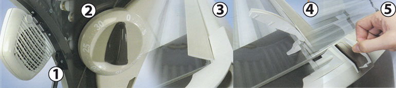 - 3, 4 : Accesso alle lampade abbronzanti facilitato tramite una speciale chiave fornita